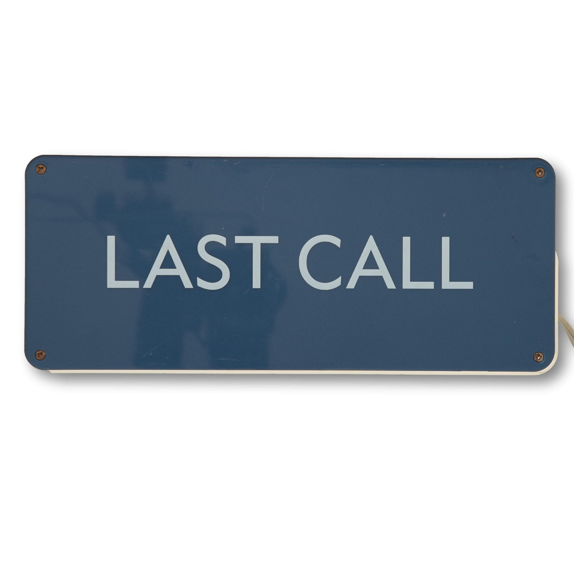 One side says Last Call. The Other side says Happy Hour. Switch on cord.