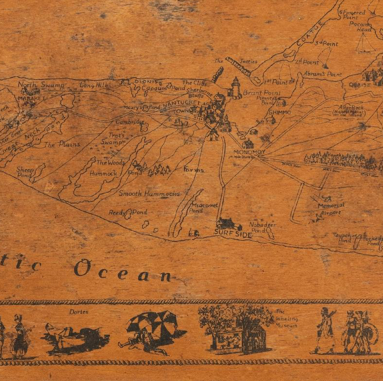 Unique map of Nantucket Island, made on a wood backing and is in original wood frame