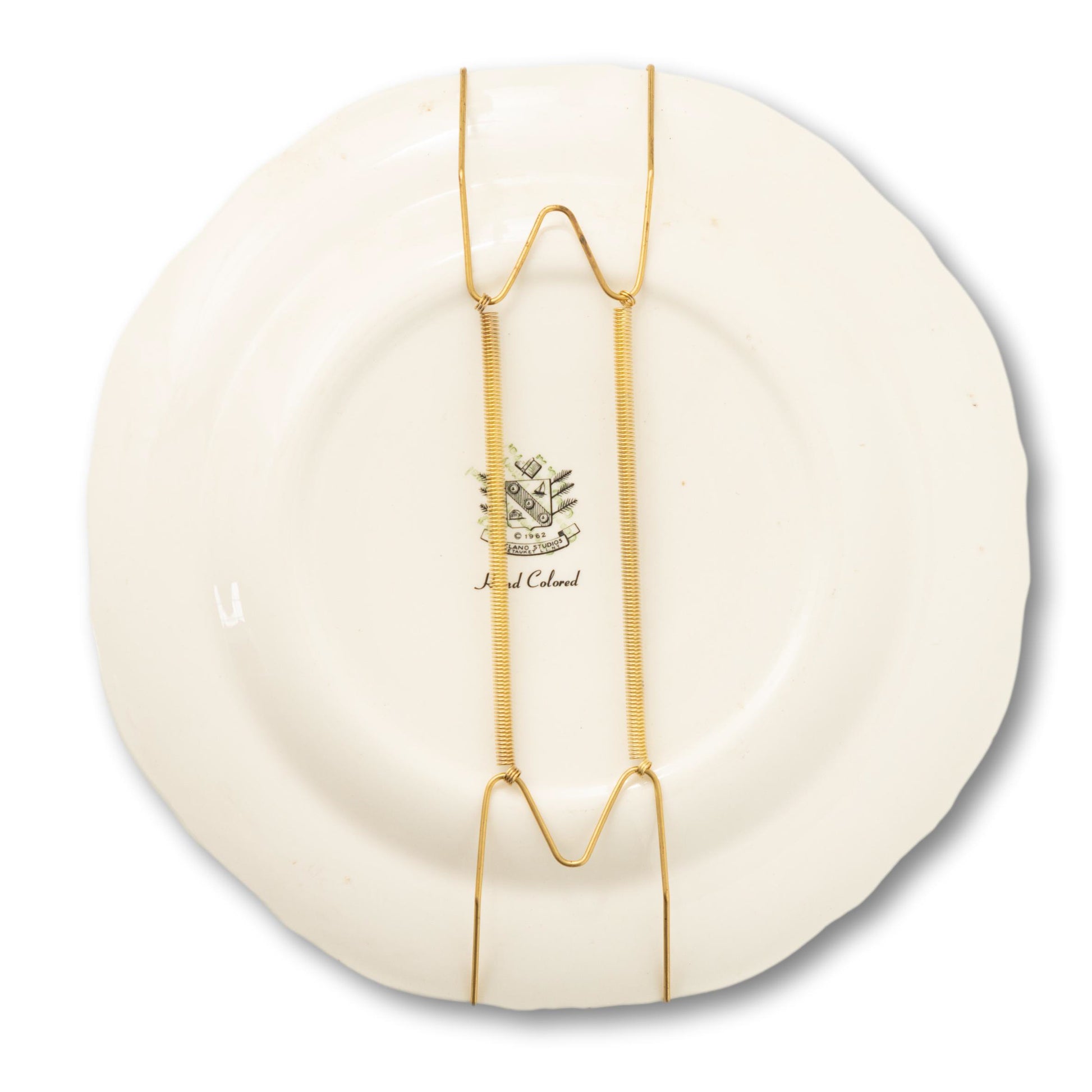 Beautiful hand-colored ceramic plate featuring a hand-colored lobster with clams and shrimp