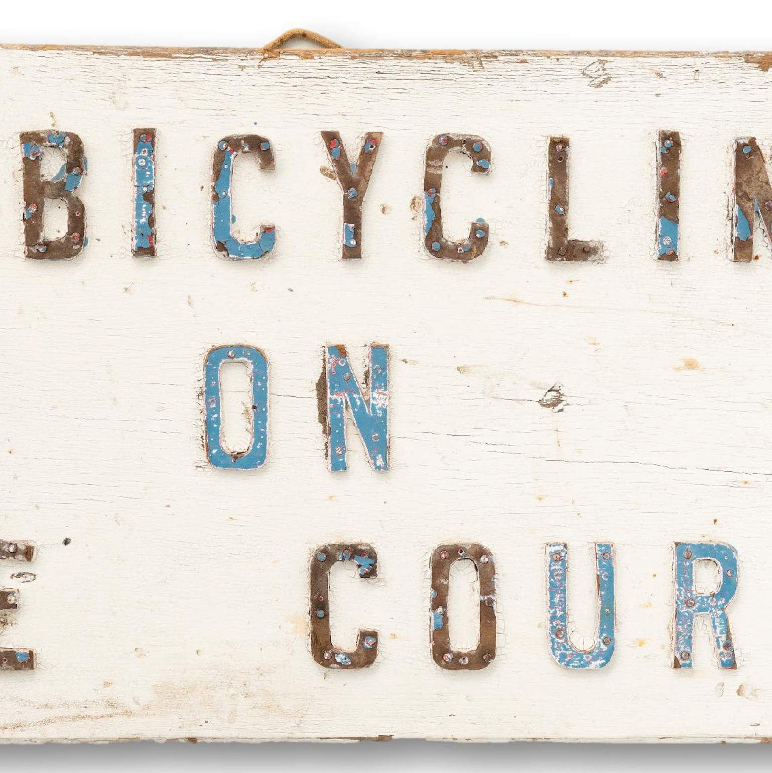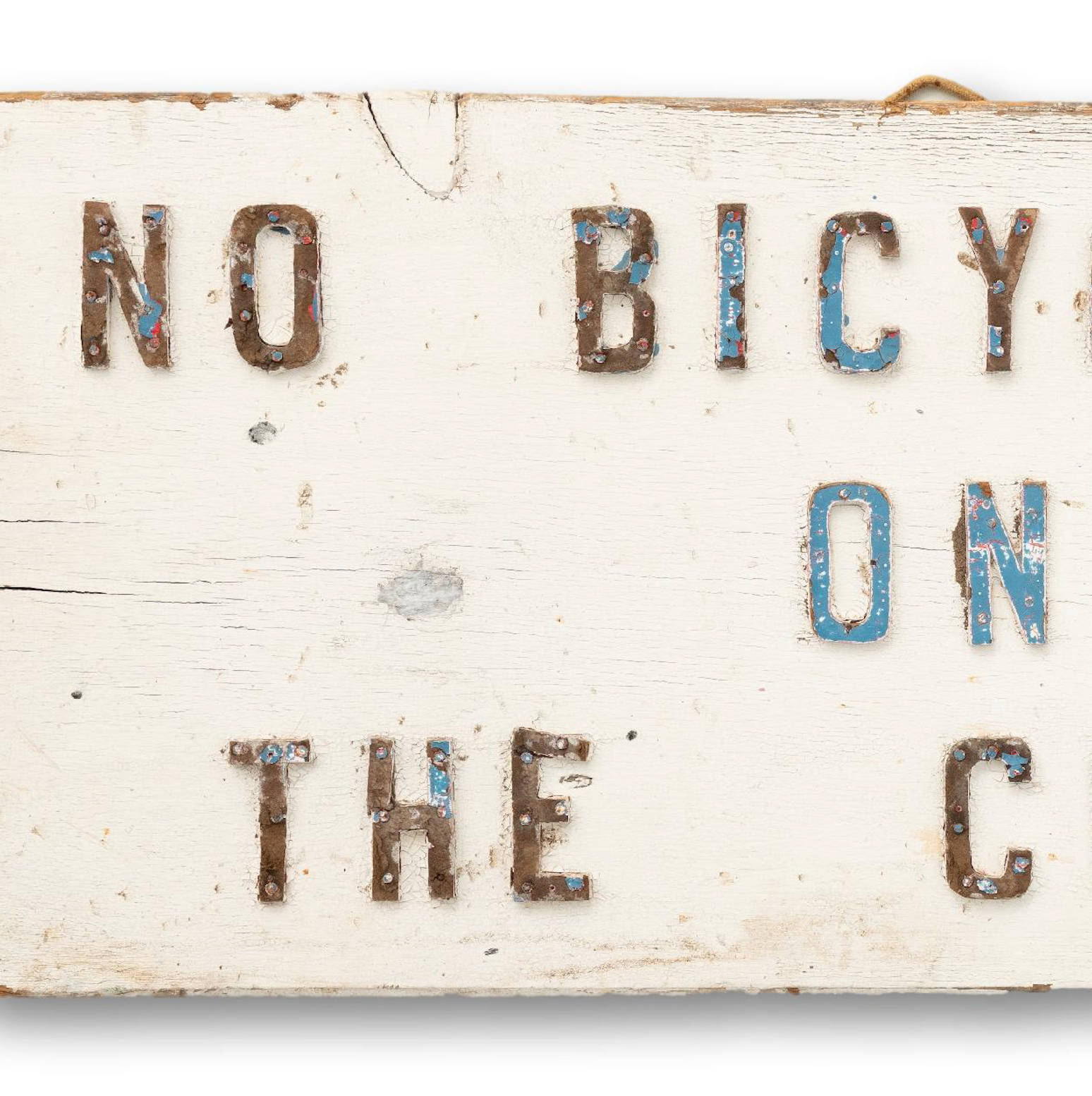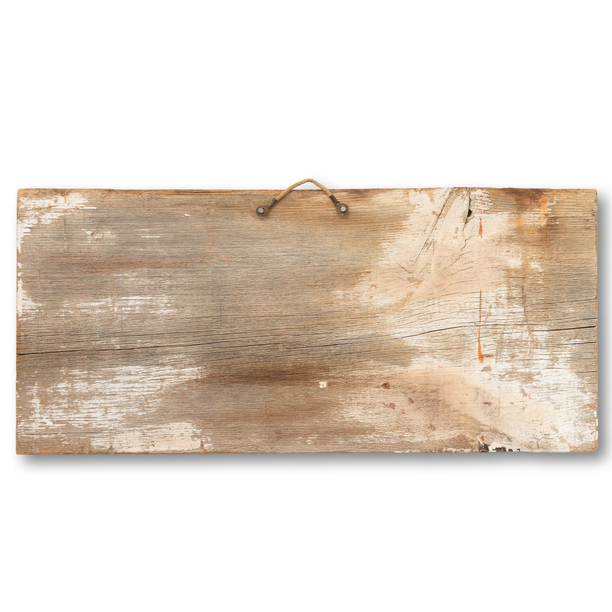Wood sign with unique handmade nailed-on letters and chipped blue paint