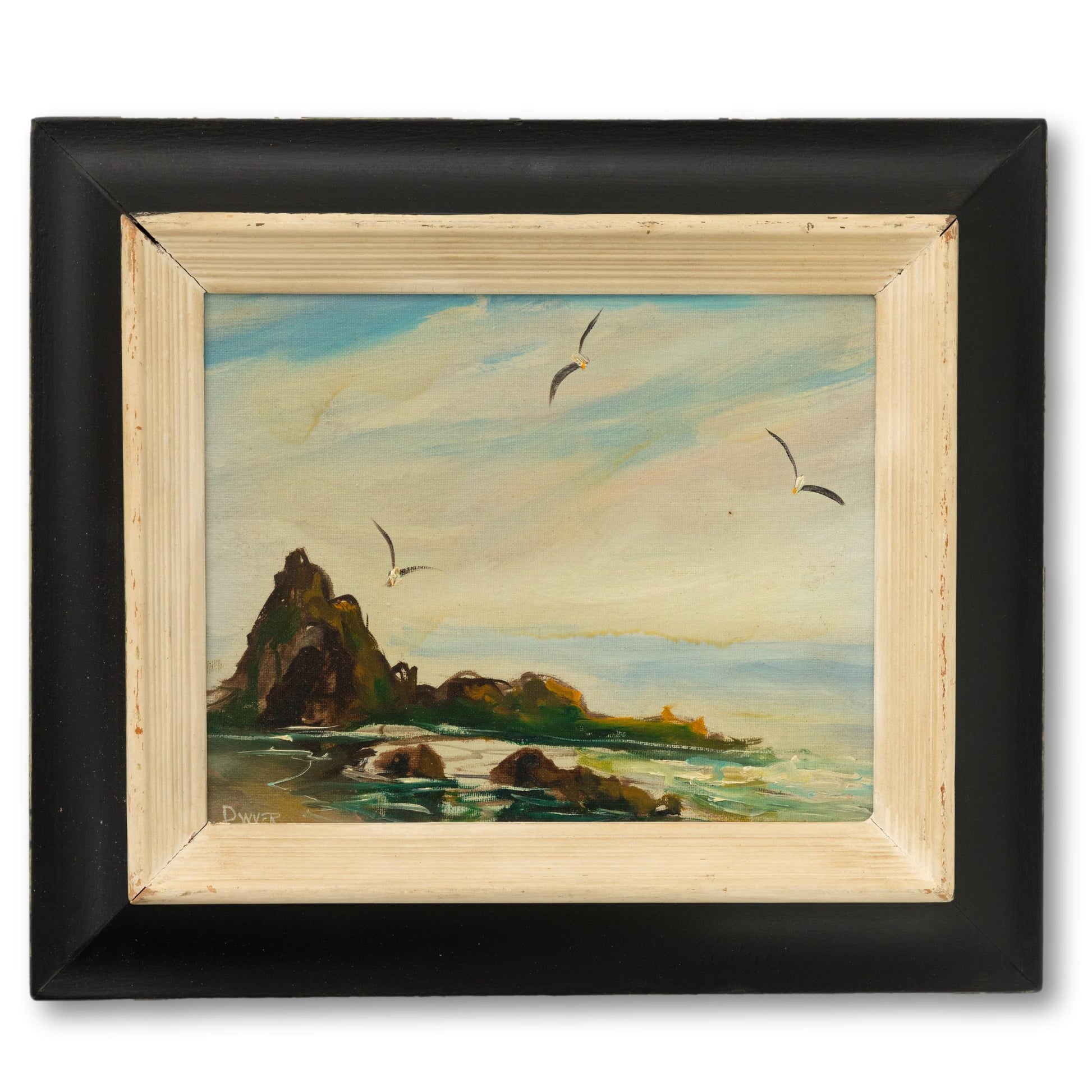 Original seascapes are oil on canvas board.