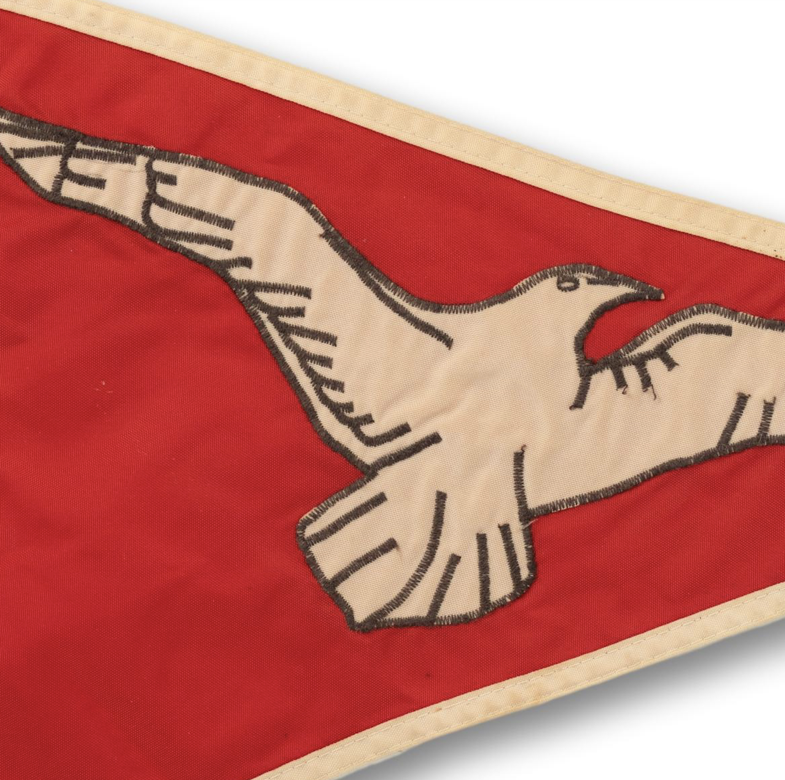 Seagull appliqué on red nylon with white edging