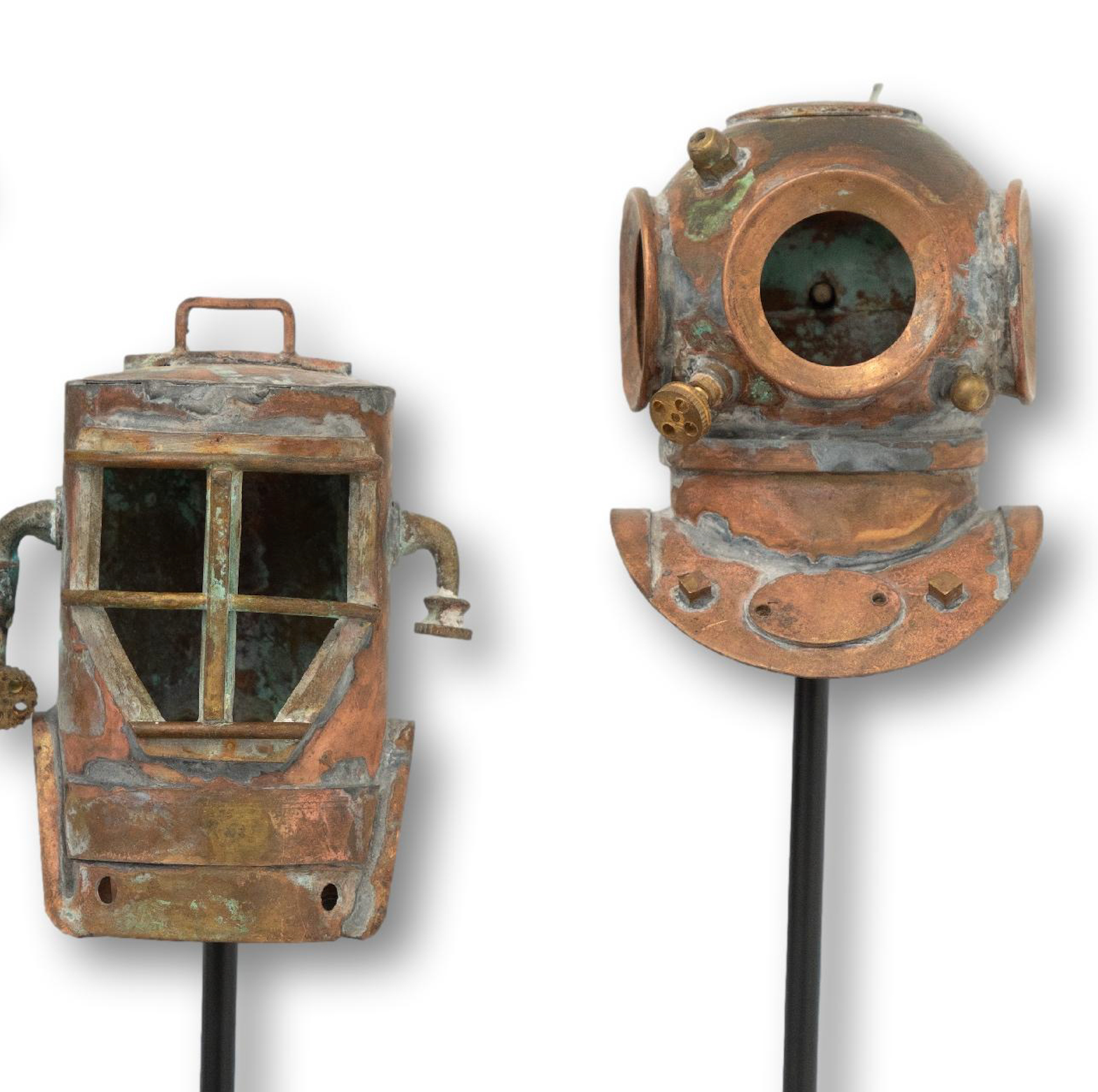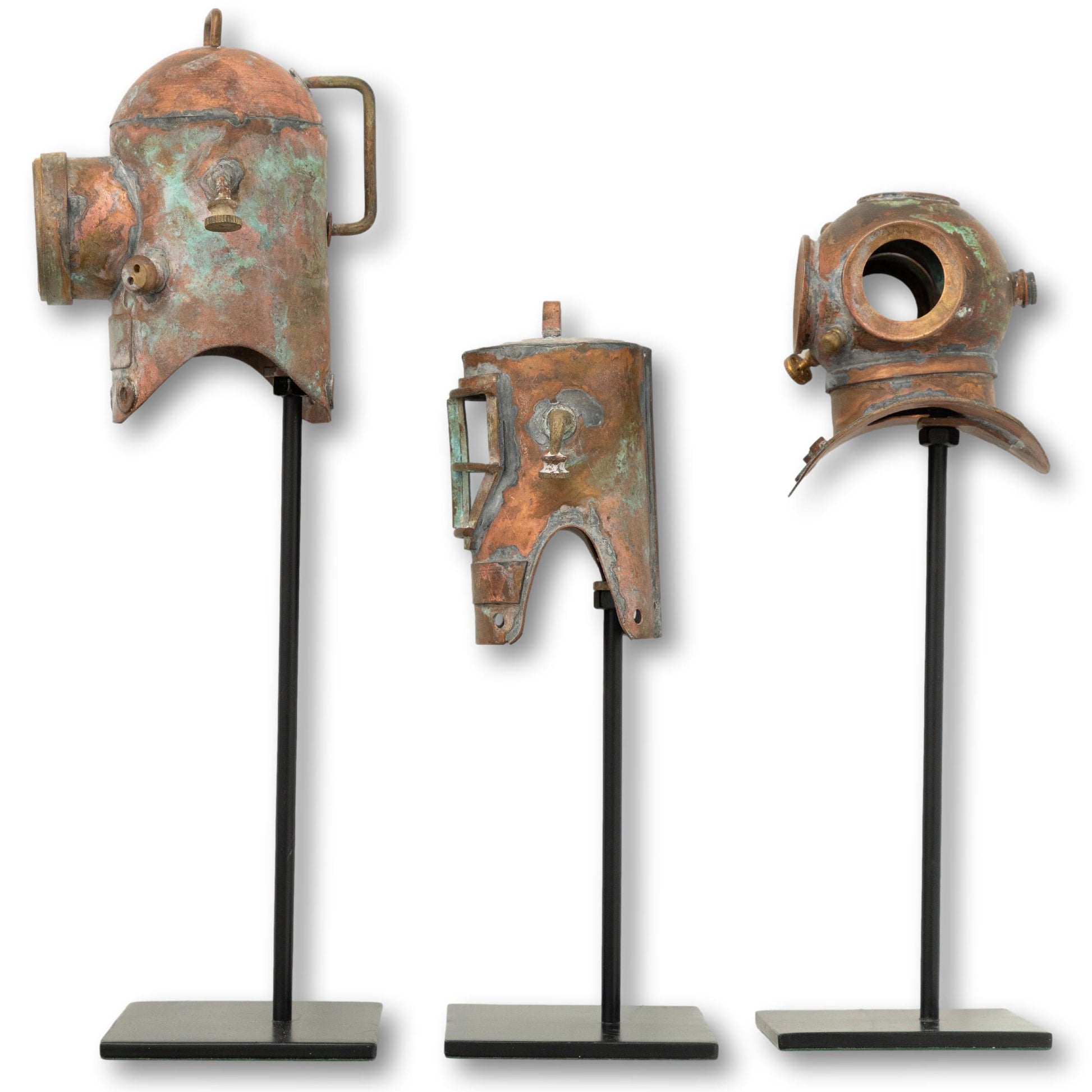 Set of 3 Diver Helmet replicas are exacting miniatures of various styles of vintage dive helmets popularized in the 1800s