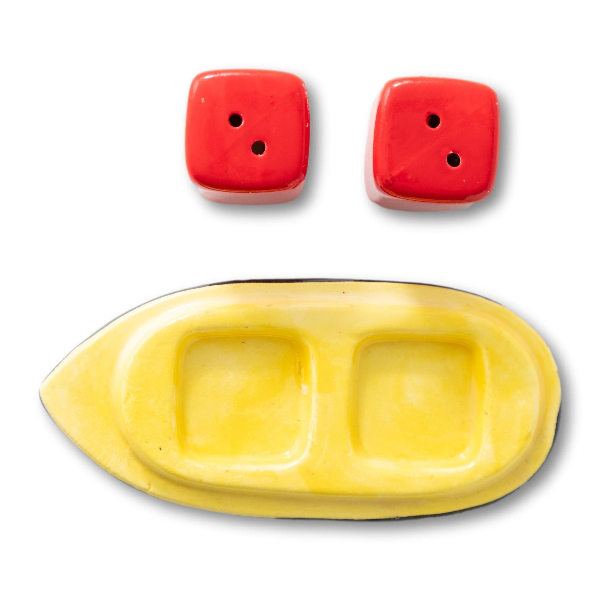 Smoke stack salt & peppers with a boat base to hold them.